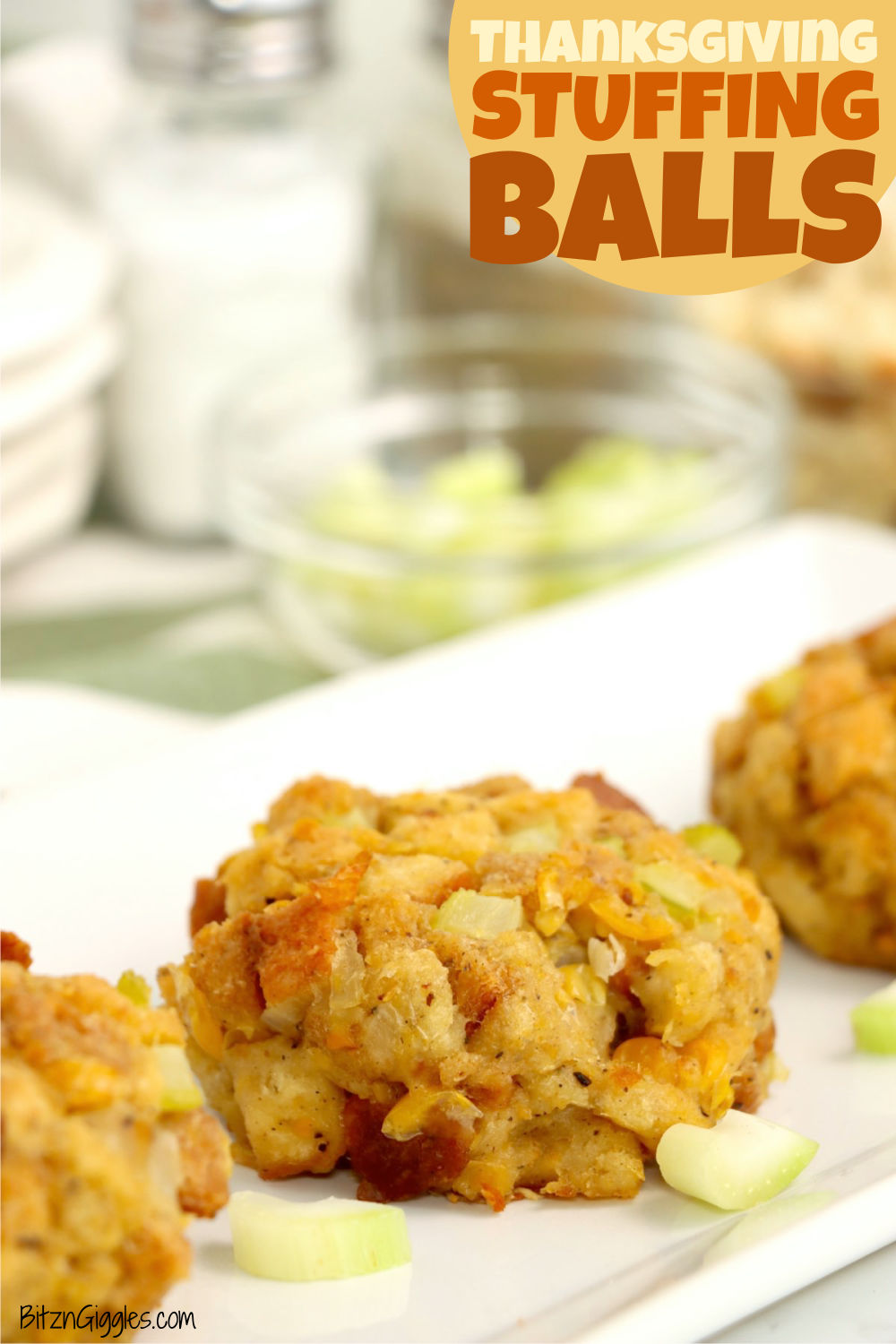 Thanksgiving Stuffing Balls - These stuffing balls are perfectly portioned and a great alternative to the traditional Thanksgiving dressing. Soft and savory on the inside, and crispy on the outside, they're bursting with flavor and absolutely delicious!