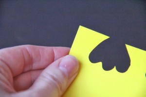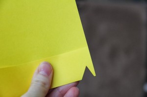 - Then take your sheet of yellow construction paper and create a vertical fold in the sheet of paper.