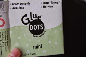 - Now you're going to glue all of the pieces to the larger black circle. Grab your glue dots!