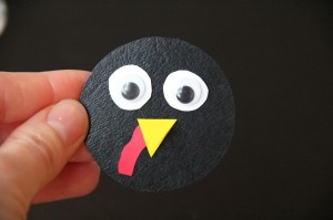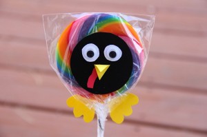- Next, take your whirly pop and glue the turkey face towards the bottom of the pop.
