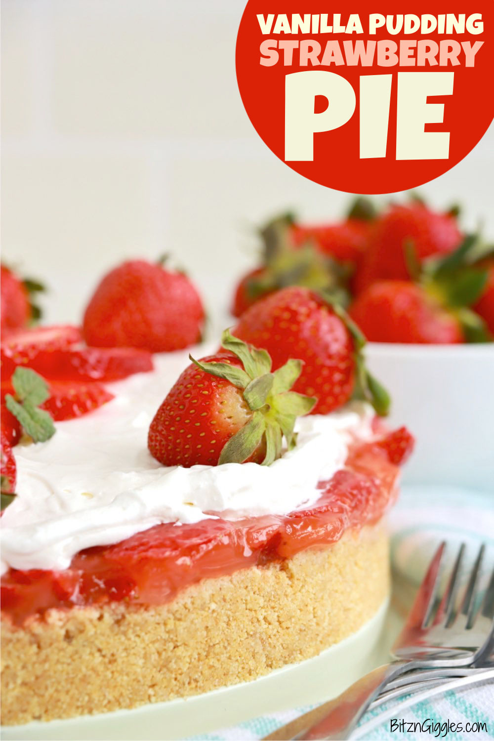Strawberry season is here! Whether you buy your strawberries at the grocery store, farmer’s market, or pick them yourself, they are going to taste perfect and go great in this delicious Vanilla Pudding Strawberry Pie!